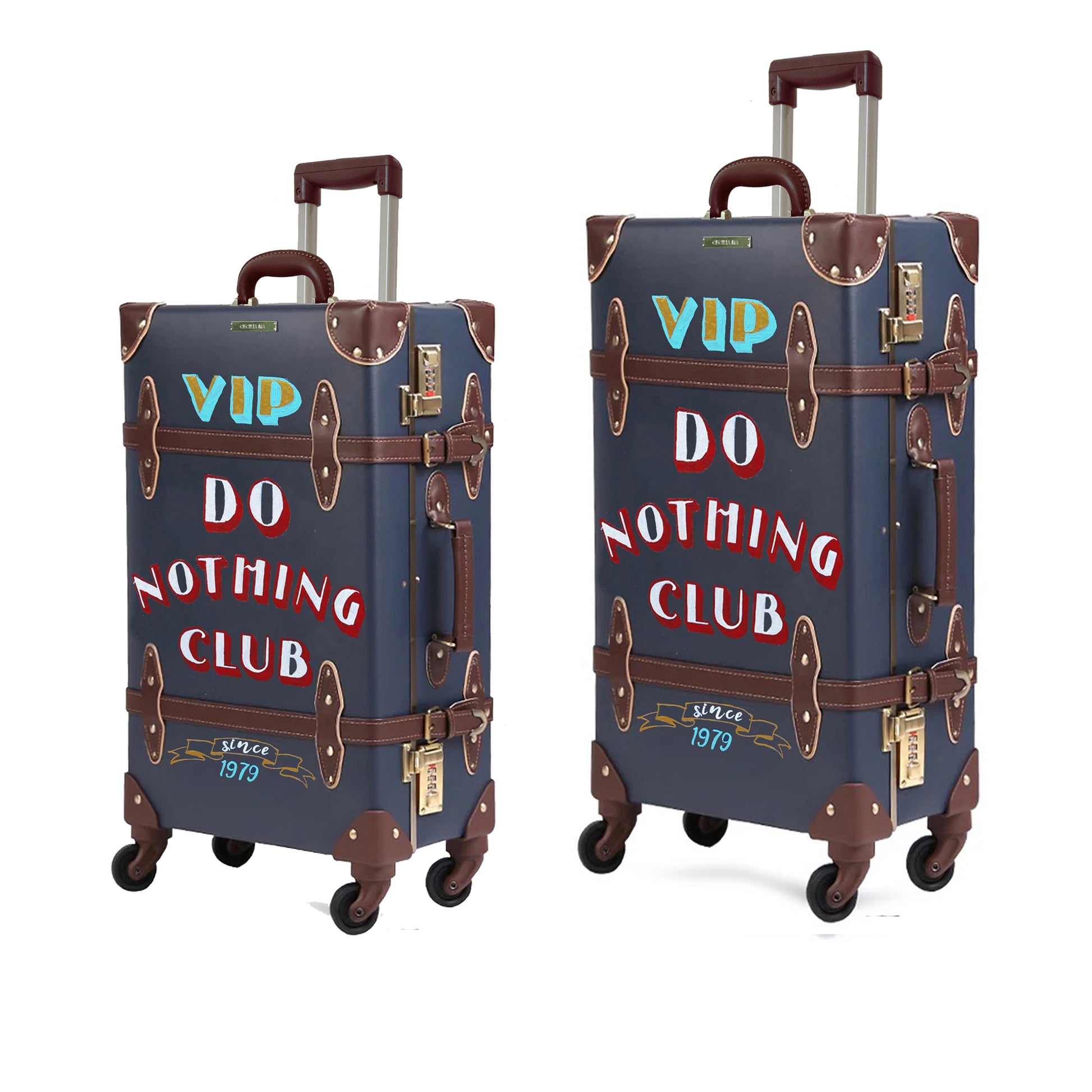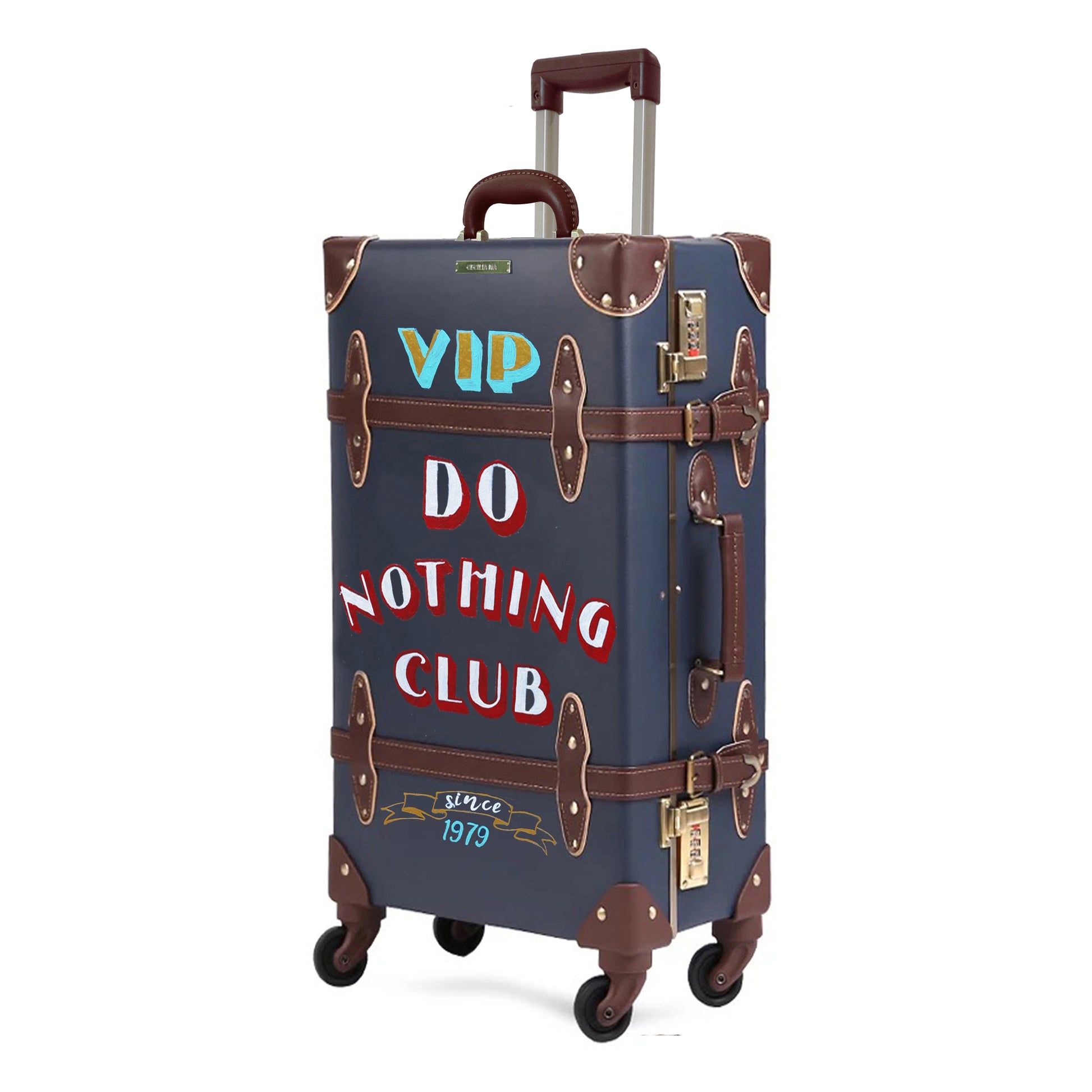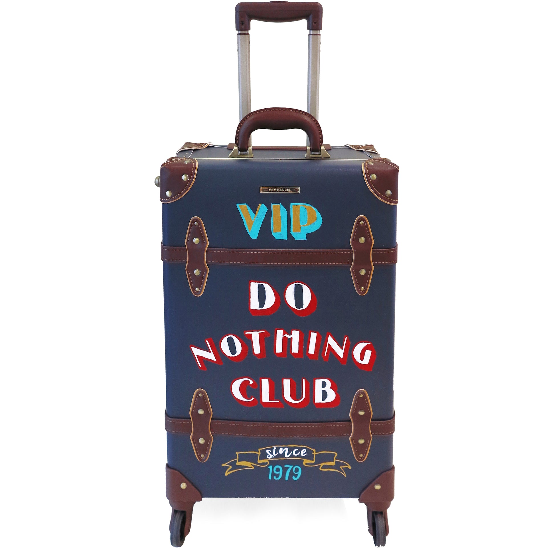 Handprinted Suitcase carry-on cabinet size (22 inch) with corner guards and full lining.