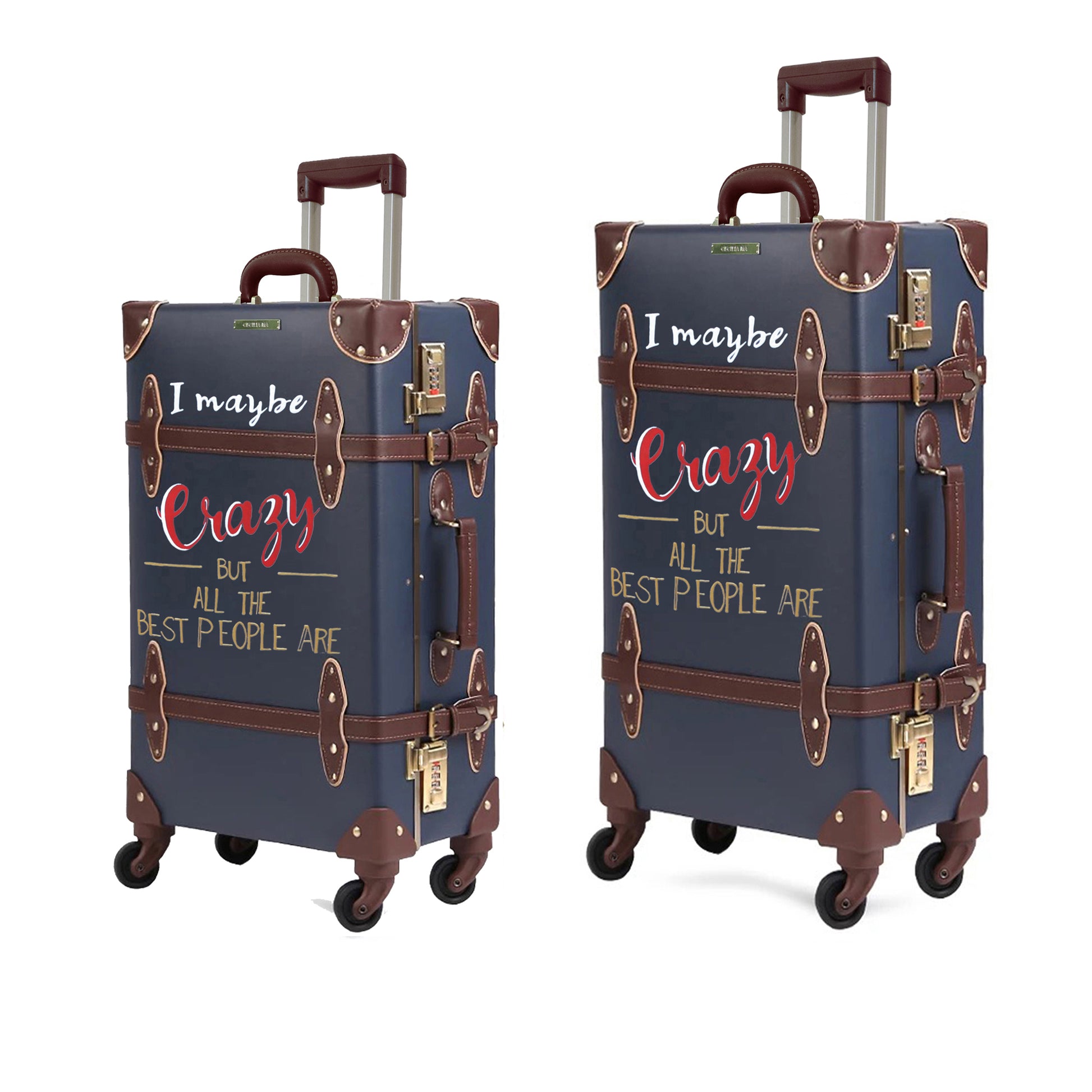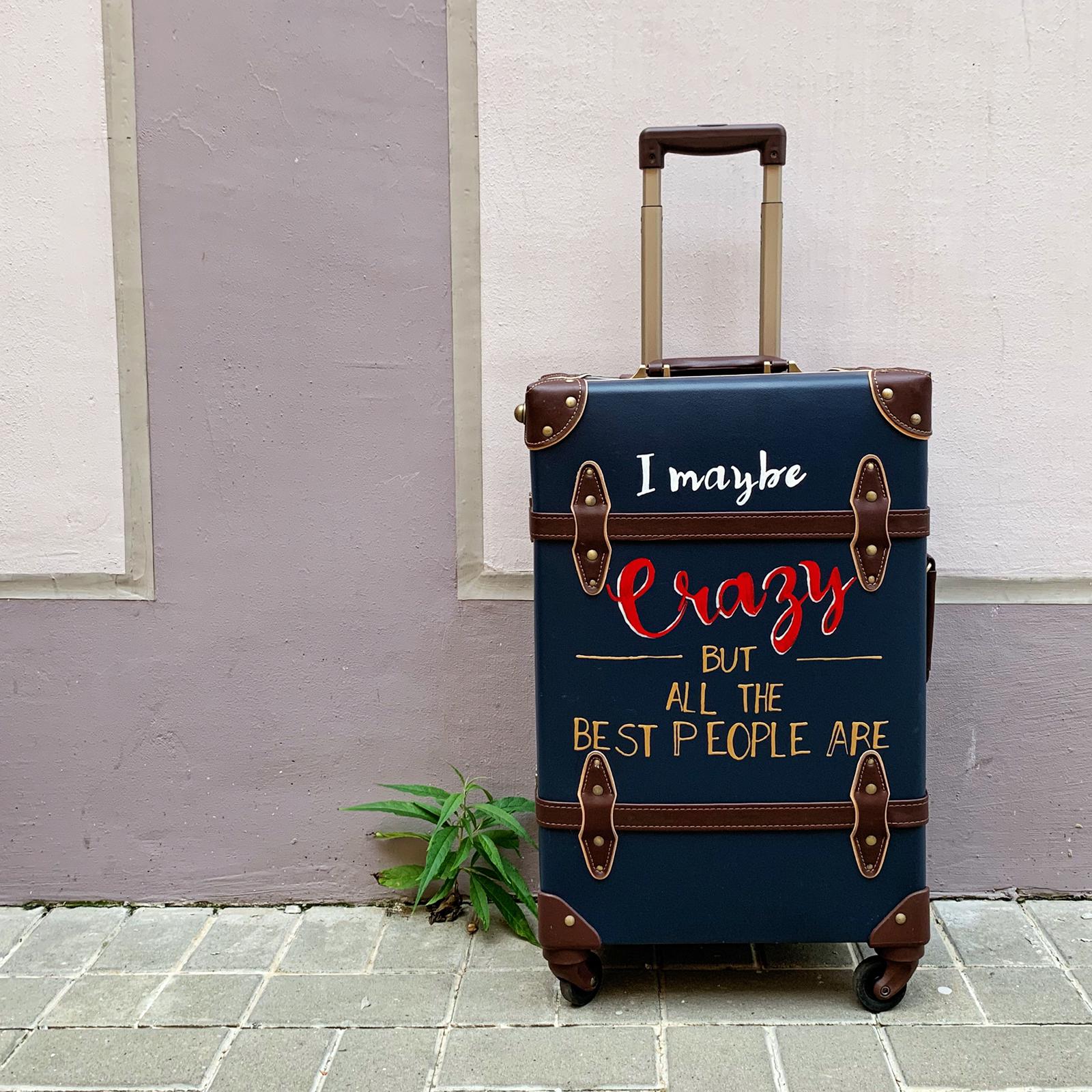 Handprinted Suitcase carry-on cabinet size (22 inch) with corner guards and full lining.
