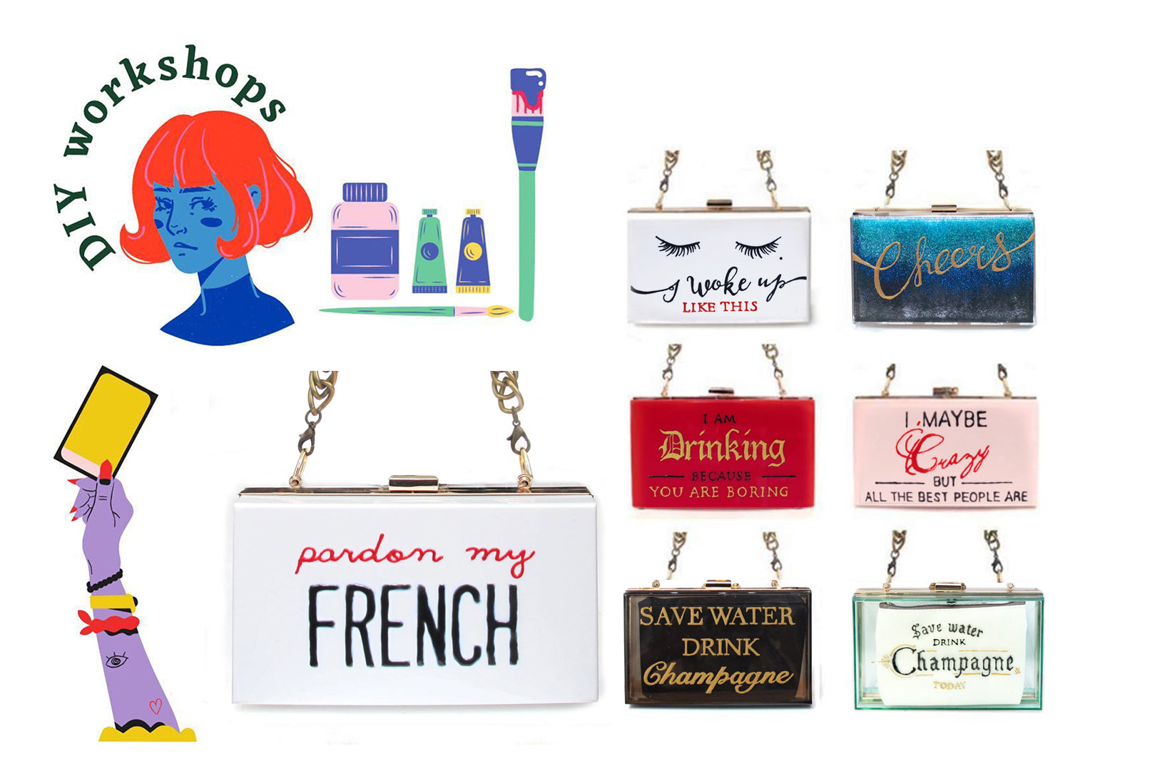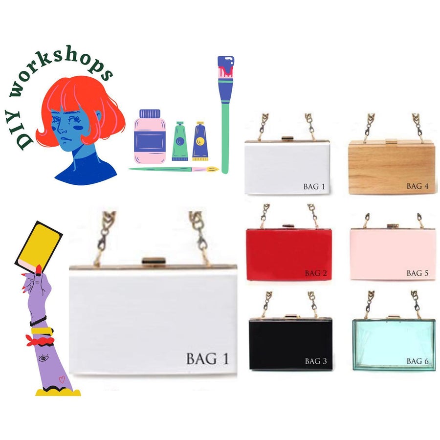 迷你手袋這股潮流愈演愈烈,各大時尚品牌都相繼推出各款超迷你手袋。DIY Daydream Factory 推出【迷你手袋工作坊】 ! 由Designer 教你打造別具個性又玩味十足的迷你手袋, 在硬身亞克力手袋上加手繪圖案,為精品賦予個人風格, 手繪幽默的標語,令人會心一笑。除了自選手繪圖案、顏色、字體,亦可配搭金屬配件或精美貼飾。