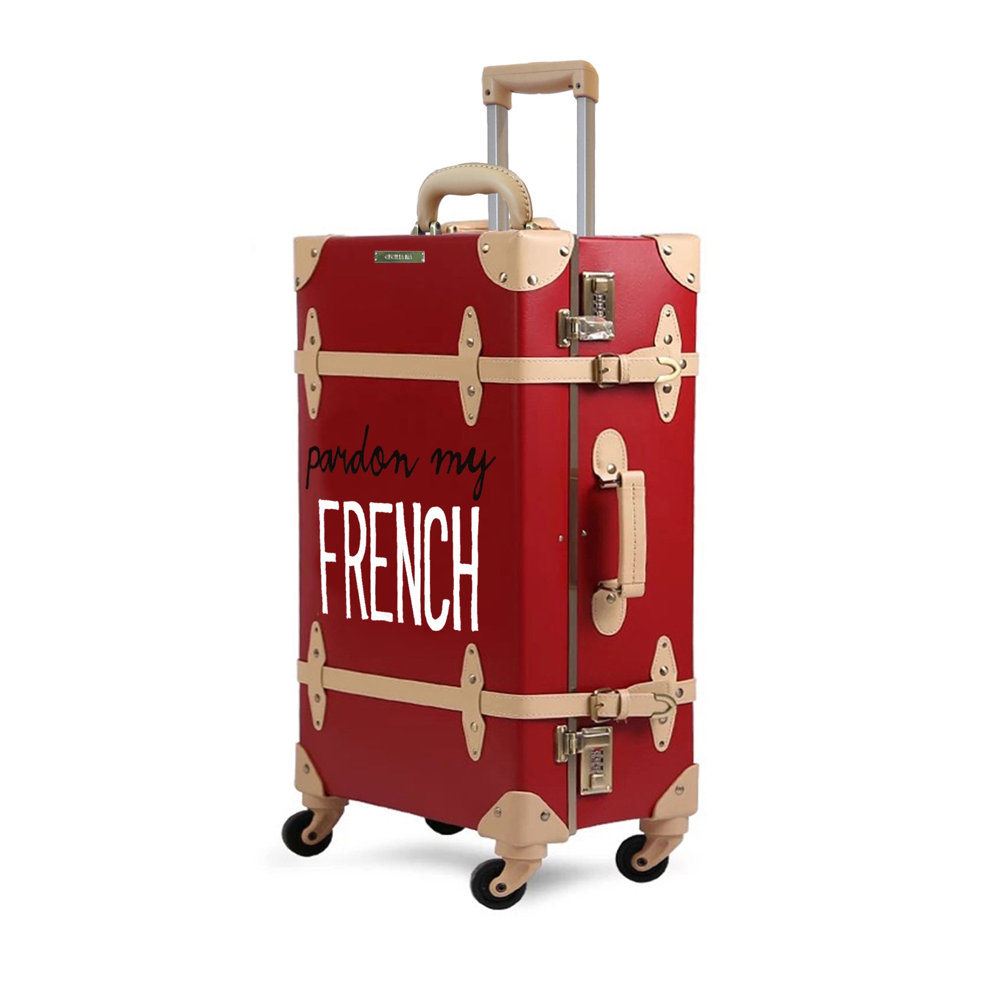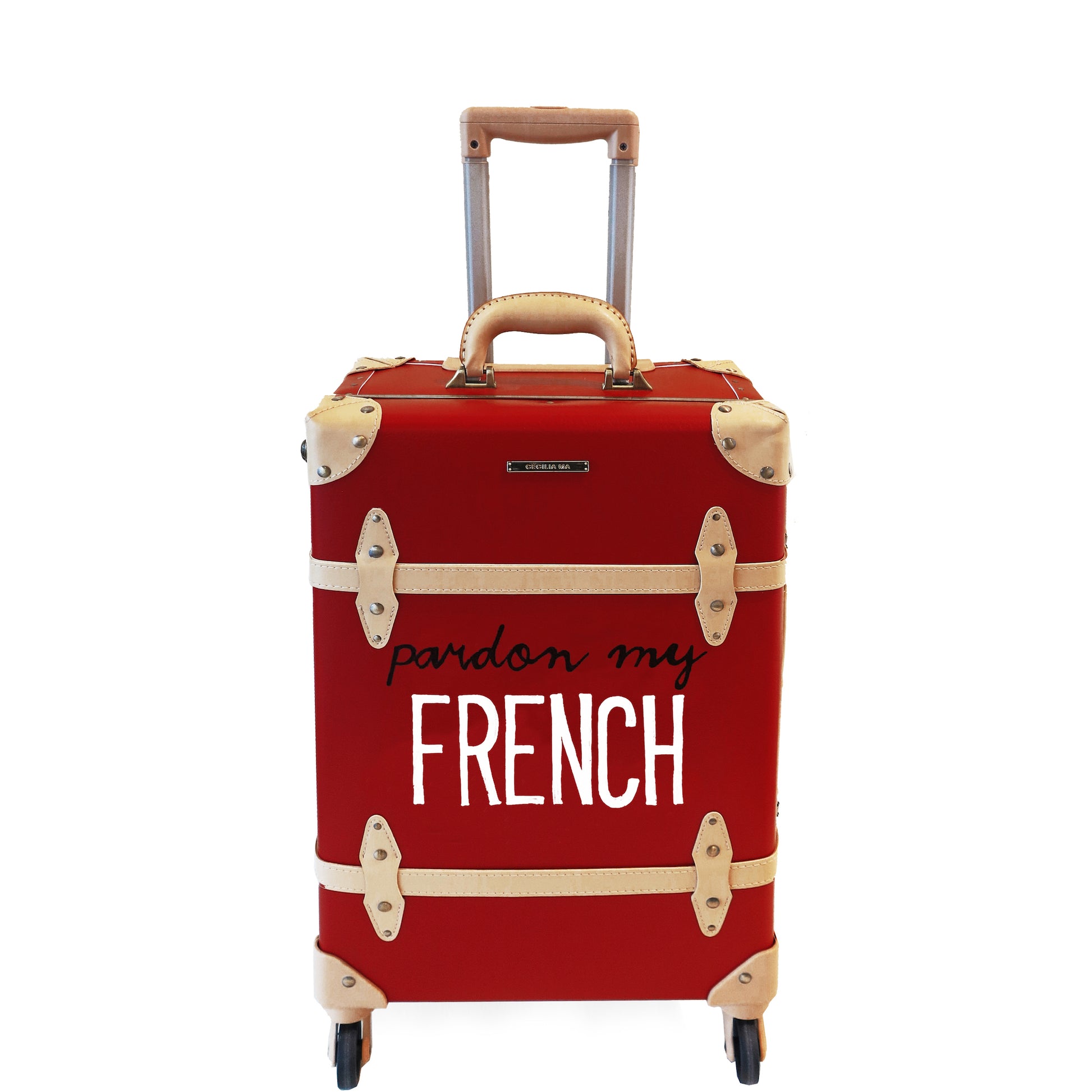Handprinted Suitcase carry-on cabinet size (20 inch) with corner guards and full lining.