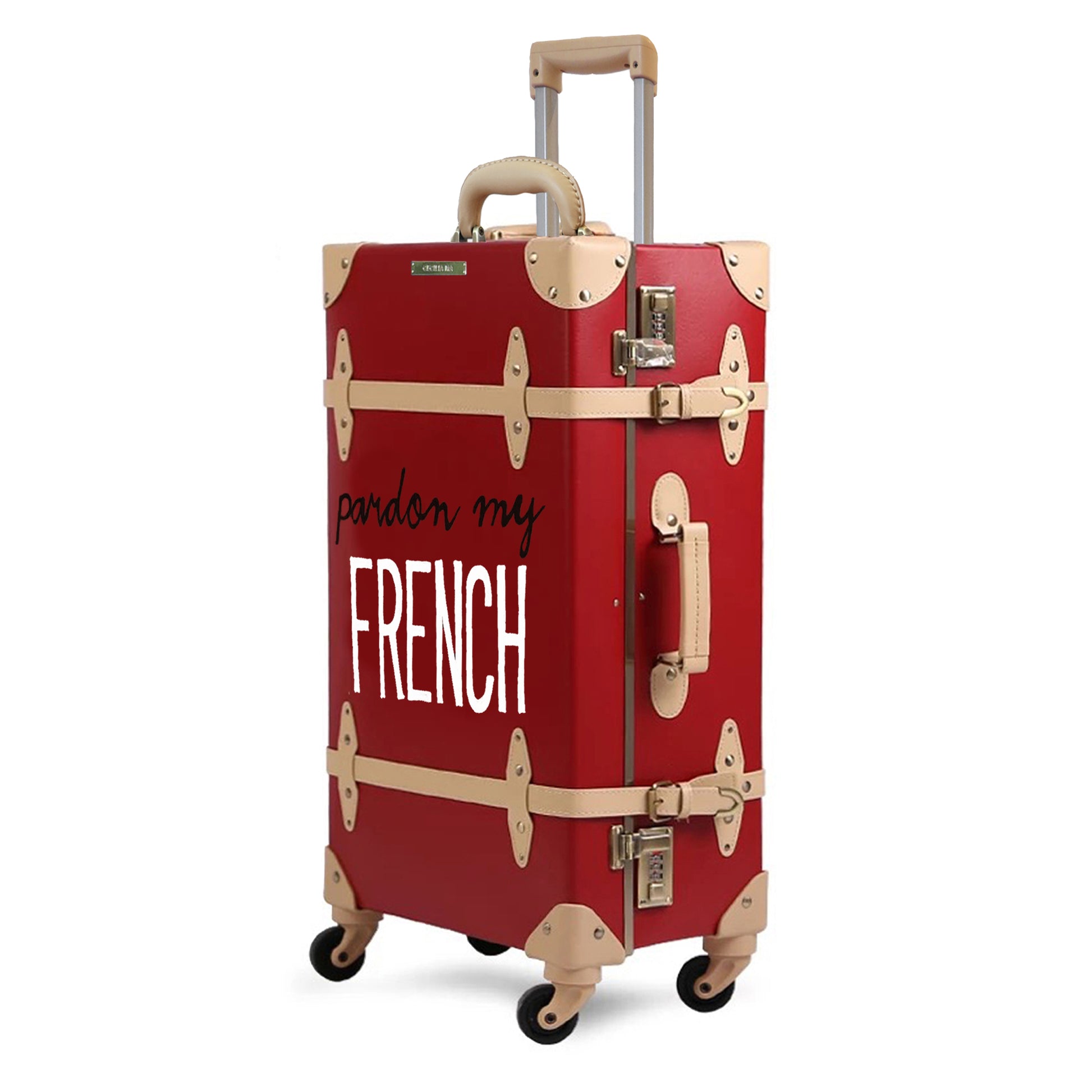 Handprinted Suitcase carry-on cabinet size (22 inch) with corner guards and full lining.