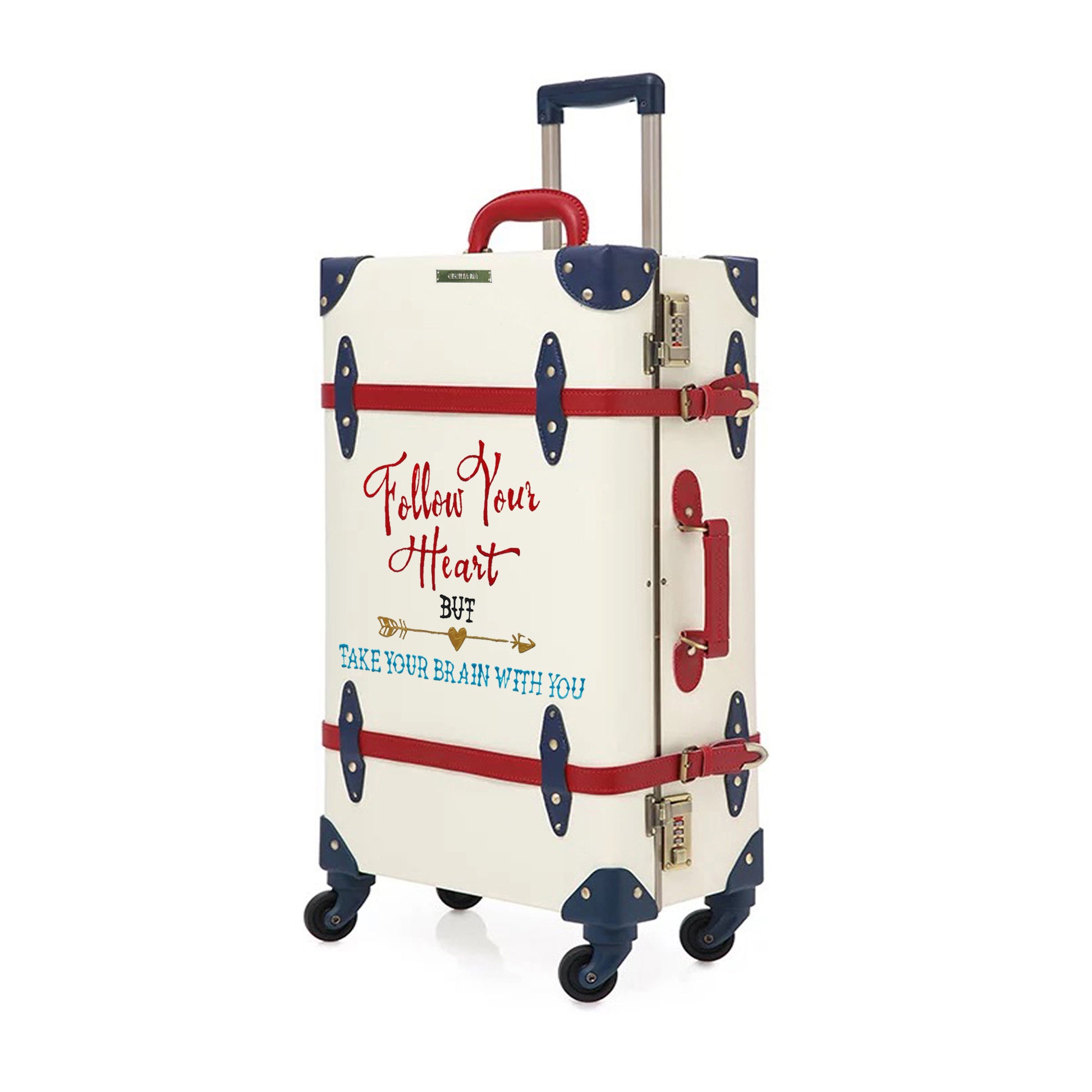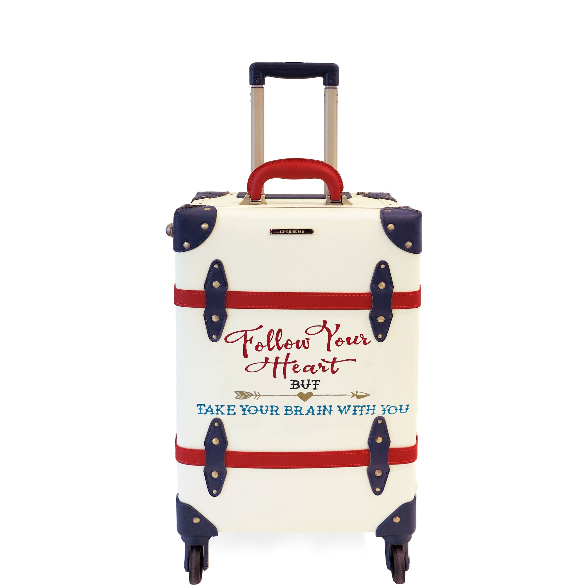 Handprinted Suitcase carry-on cabinet size (20 inch) with corner guards and full lining.