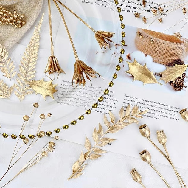 乾花/永生草:金色滿天星、金色八角花、金色羊齒葉