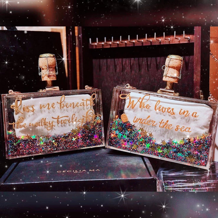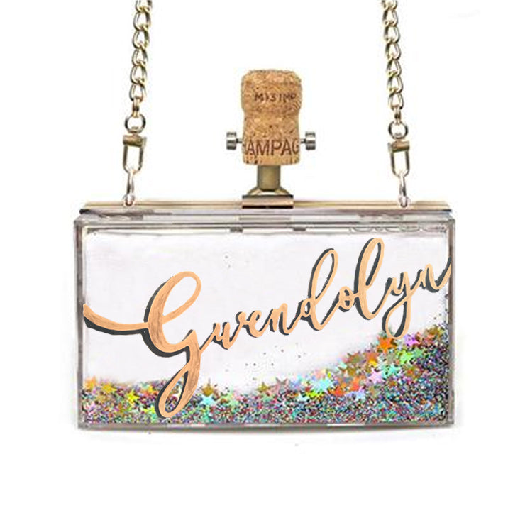 Give us your name, or statement we will create an exclusive clutch bag for you. Champagne corks